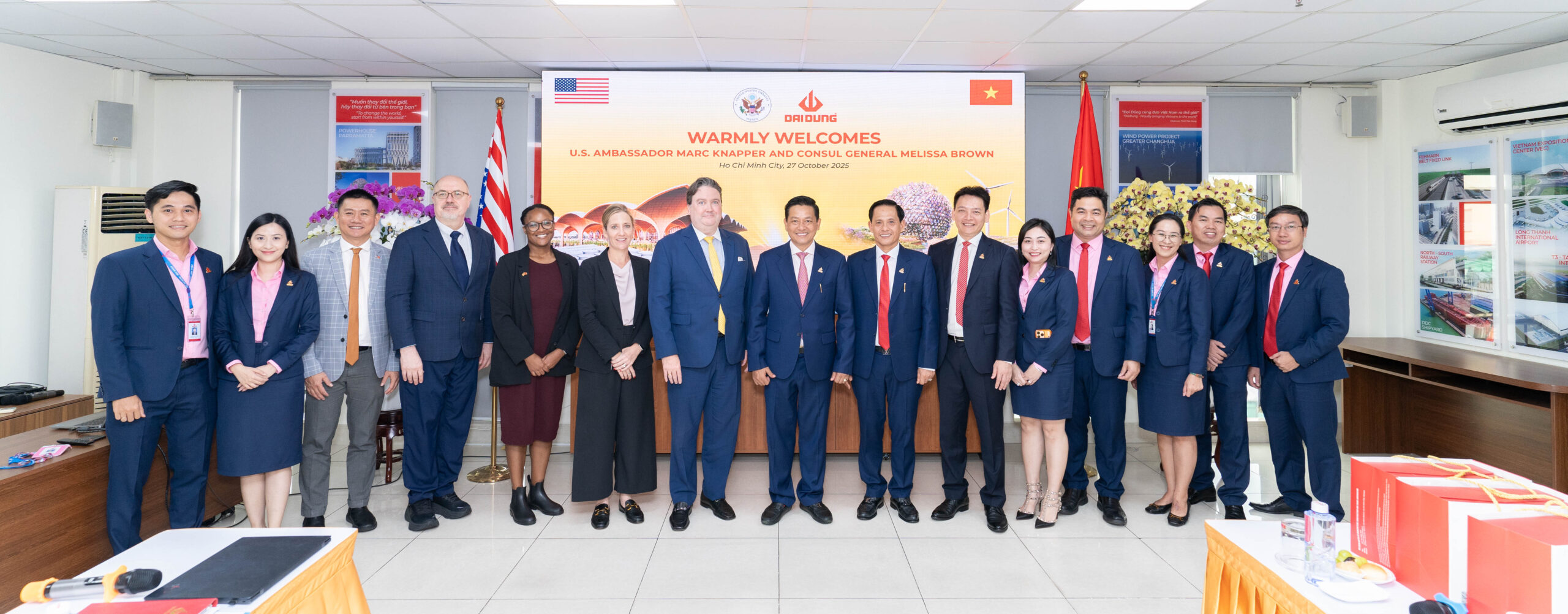Tập đoàn Đại Dũng vừa hân hạnh tiếp đoàn Đại sứ và Tổng lãnh sự Hoa Kỳ đến thăm và làm việc, đánh dấu bước tiến quan trọng trong chiến lược quốc tế hóa của doanh nghiệp dẫn đầu ngành cơ khí chế tạo và kết cấu thép Việt Nam. Sự kiện minh chứng rõ nét cho năng lực kỹ thuật, quản lý dự án và uy tín quốc tế của công ty, đồng thời góp phần khẳng định mối quan hệ Việt – Mỹ đang ngày càng bền chặt trên tinh thần hợp tác Đối tác chiến lược toàn diện giữa hai nước và mở ra cơ hội đưa thương hiệu Việt vươn ra thị trường toàn cầu.