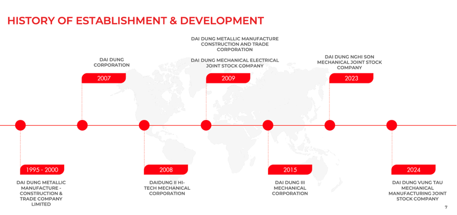 Established in 1995, DaiDung Group has undergone nearly three decades of continuous construction and development, rising to become a leading multi-industry corporation in Vietnam, with a particularly strong mark in the fields of mechanical fabrication, construction, and its core business of steel structures. Not limited to the domestic market, DDC holds a grand vision: “To become a world-class multi-industry corporation, a national brand, and a leading symbol of Vietnam.”