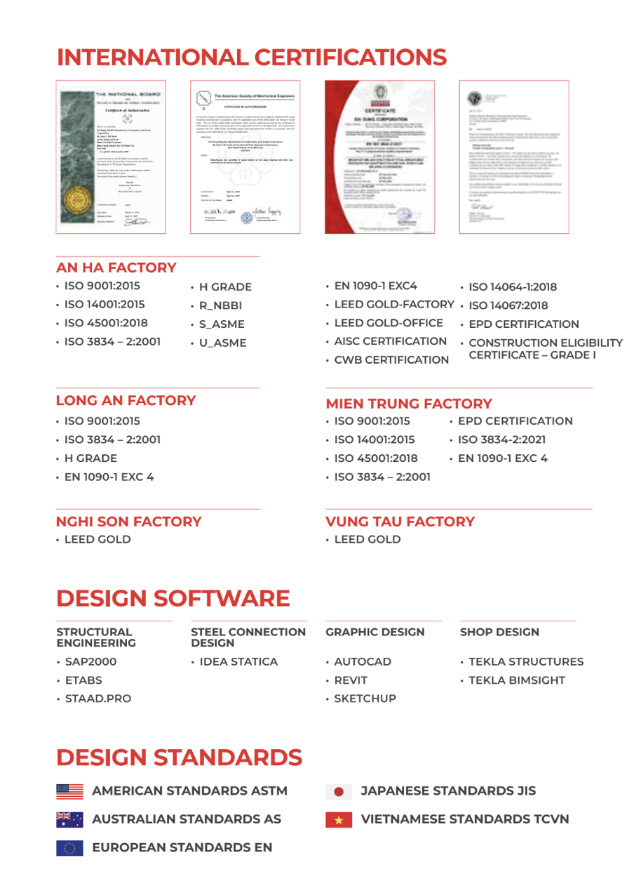 - International Quality: Strict adherence to international standards (ISO, AISC, EN, JIS…) and rigorous quality management processes.