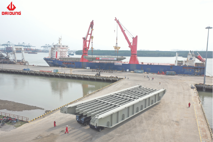 Logistics and Export Capabilities: The strategic location of the factory clusters offers DDC Group to easily connect to major seaports (Cat Lai, Cai Mep, Nghi Son, Vung Tau…) and international airports, facilitating the transportation of oversized and super-heavy components worldwide. To date, “Made by DDC Group” steel structure products have reached over 60 countries and territories, serving key global projects.